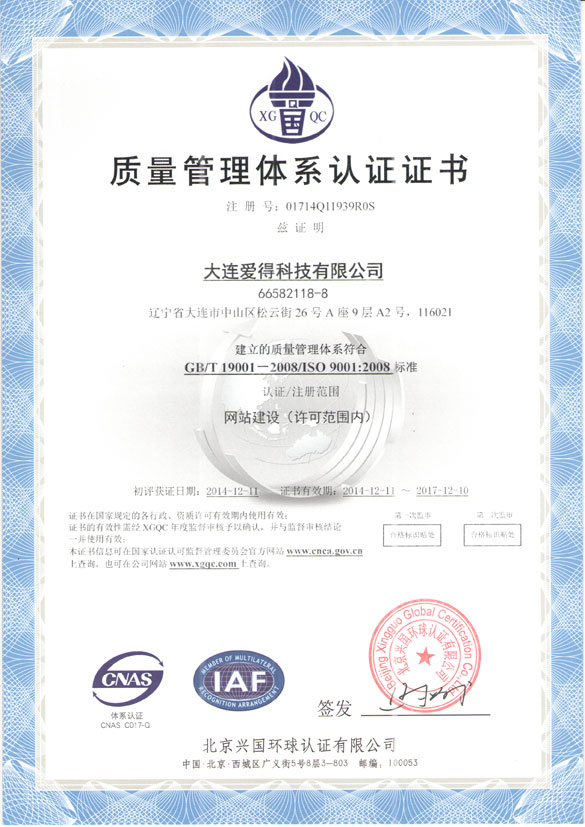 公司通過ISO90001質量管理體系,標志著公司的管理又上了一臺階,理解用戶需求,把握設計創意,嚴格管理建設流程,為更多企業更好的做好互聯網服務。