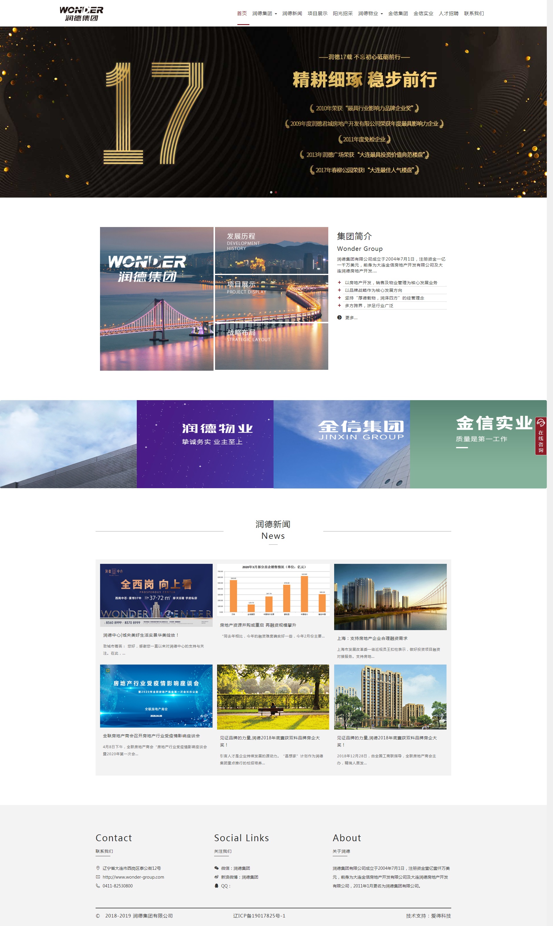 潤德集團有限公司成立于2004年7月1日,注冊資金壹億壹仟萬美元,公司總部位于大連,旗下擁有大連潤德君城、乾城、良城三大房地產開發有限公司及潤德物業服務(大連)有限公司、大連潤德公園商業有限公司、大連潤德機動車檢測有限公司、大連潤德酒店有限公司、大連潤德廣場酒店有限公司5個子公司。經過多年的不懈發展,潤德集團已發展成為跨行業、跨地區、多領域、綜合性的集團公司。