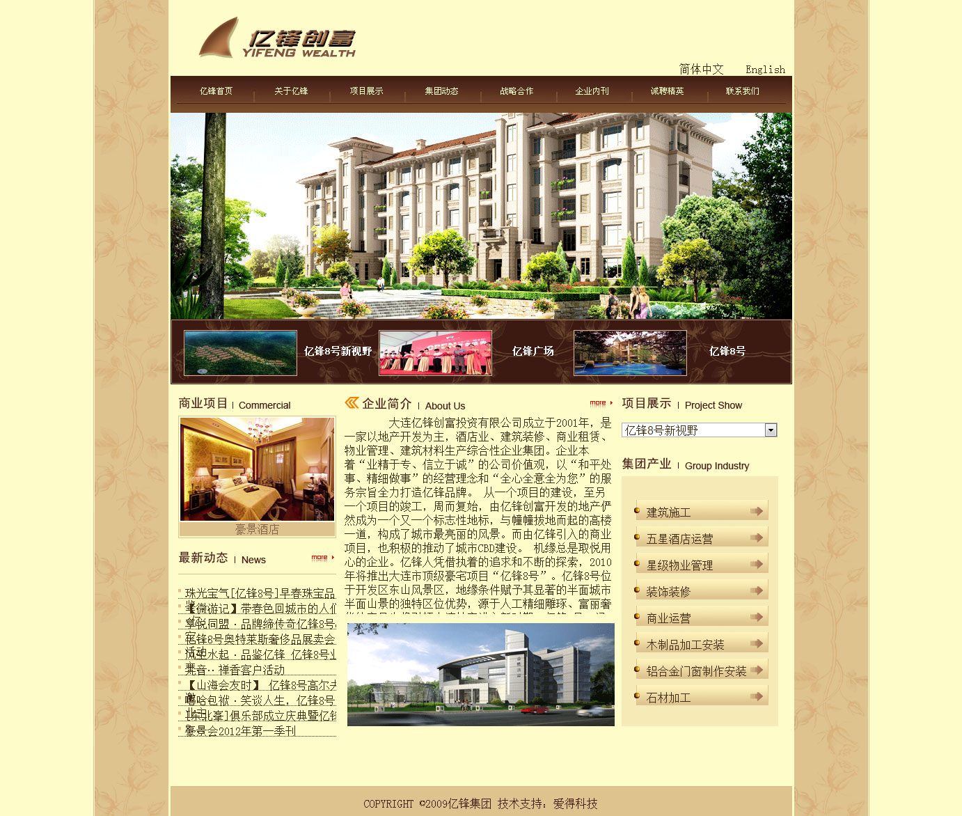 大連億鋒創富投資有限公司成立于2001年,是一家以地產開發為主,酒店業、建筑裝修、商業租賃、物業管理、建筑材料生產綜合性企業集團。